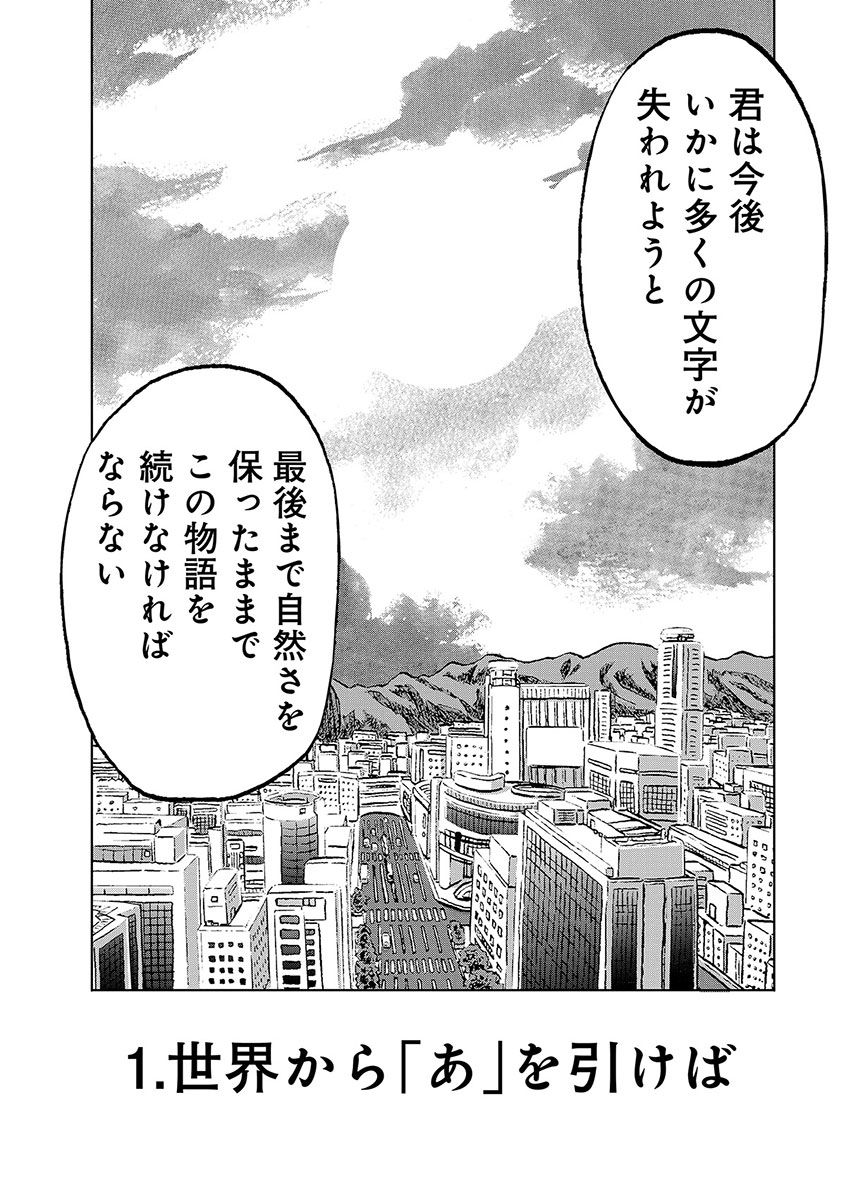 世界から一つずつ文字が消えていく。文字が消えれば、言葉が消える。言葉で表現できないものは、この世から消える。――いったいどれだけのものを消滅から守れるだろう。