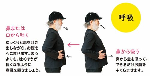 心身がリラックスし、凝り固まった筋肉も緊張から解放されます。体操中も、できるだけ「腹式呼吸」を意識してください。