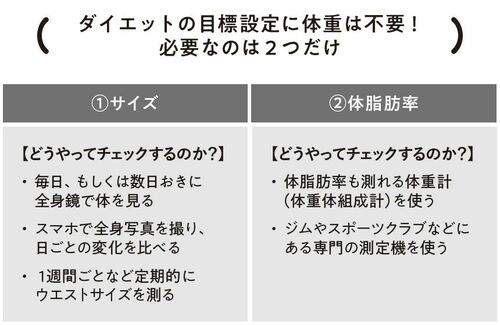 さらに、ダイエットの目標として、また成功の目安として大事にしたいのが、体脂肪率。