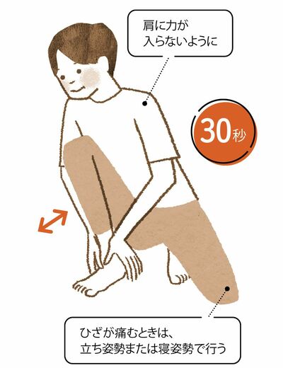 (1)右ひざを立てた状態で床に座り、左足はひざをついて足指を床につける。右足の距骨に両手の親指を置く