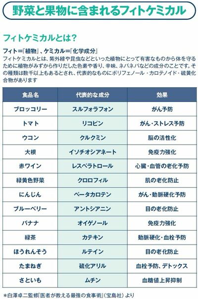 フィトケミカルは野菜や果物から、これまでに1000種類以上発見されています。