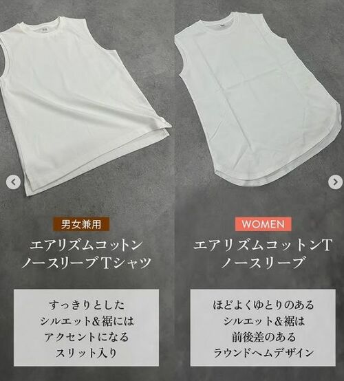 この夏、活躍してくれそうなユニクロの「エアリズムコットンT/ノースリーブ」。ぜひワードローブに取り入れてみてくださいね。