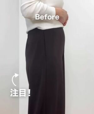 その違いは一目瞭然。下腹部がしっかり押さえられ、着用後にヒップラインが整った様子が写真を通じてでも、よく伝わるのではないでしょうか。