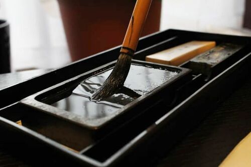 私が日々使用している硯は、文化財の修復も手がける製硯師・青柳貴史氏(「柳」は正しくは「木」偏に「夘」)によるもので、端渓石を用いた両面硯です。