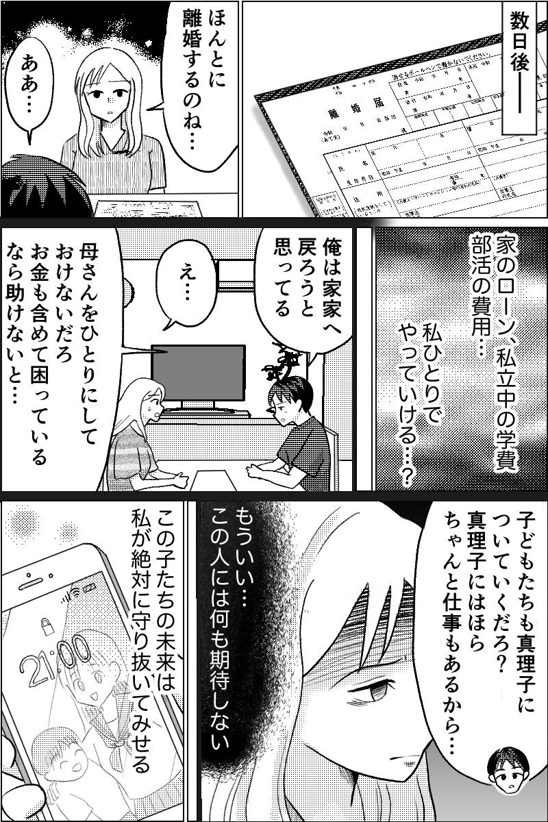 もし夫が義母にコッソリ援助していたら…。44歳の山崎真理子さんは、中学2年生の娘と小学5年生の息子を育てる2児の母。覚えのない夫名義の通帳を見つけると、そこには義母に毎月送金していた記録が。家計に余裕はなく、子どもにお金を遣ってほしいとモヤモヤする真理さん。そんな中、義母のパチンコ通いが発覚。分かったうえでお金を渡していた夫に、離婚を切り出すと…