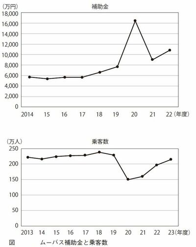 当初は、黒字経営で、バス会社から市に対して黒字額の一部について寄付金の申し出を受けるまでの好調ぶりであった。その後、2013年度には5688万円の補助金が支出され、その後次第に増加して2019年度には7675万円となっていた。コロナ禍の2020年度にはそれが1億6468万円まで膨らみ、2021年度9072万円、2022年度1億8349万円と推移している。