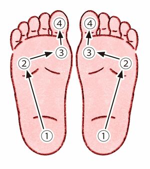 (3)重心を親指のつけ根に移動して地面を蹴る