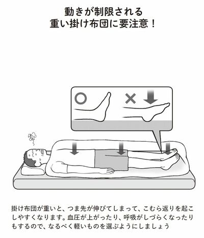 また、重い掛け布団は動きが制限されるので、寝返りしづらく、血流も悪くなってしまいます。