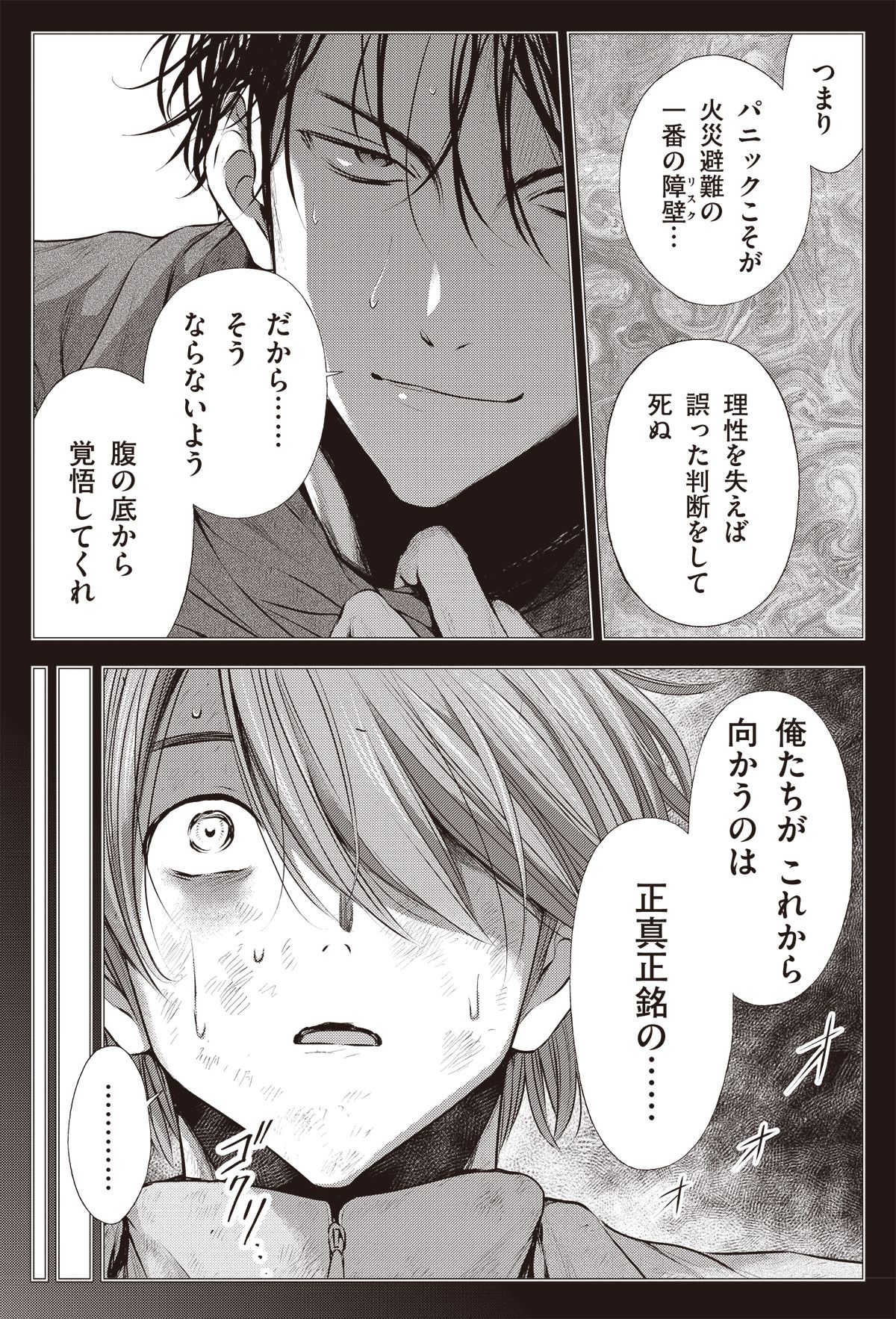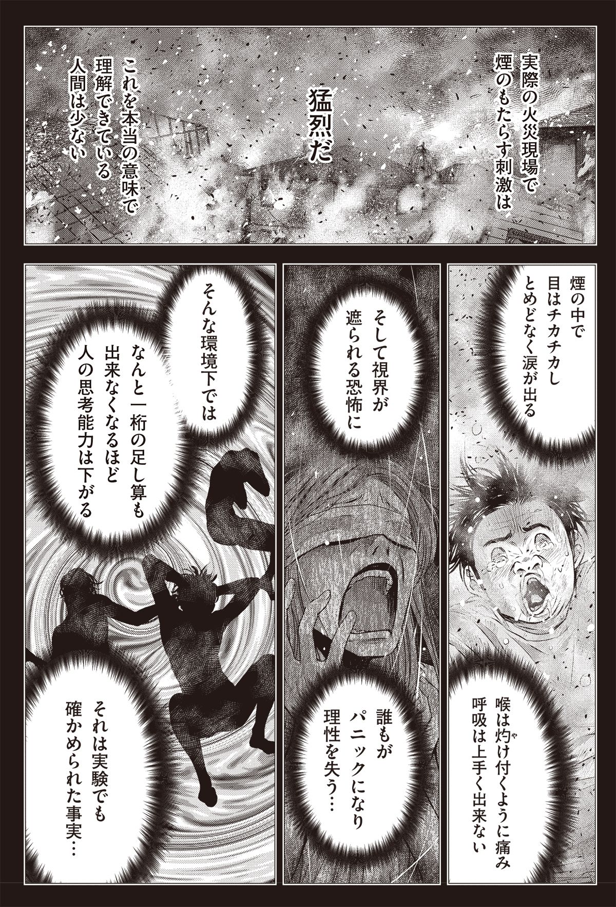 本当の意味で理解できている人間は少ない 【9】 【10】 煙がもたらした<猛烈な刺激>が火災現場には待ち受ける。 誰もがパニックとなり、思考能力も劇的に下がるという環境下で理性を失えば、待つのは「死」のみ! これから向かうのは正真正銘の――。