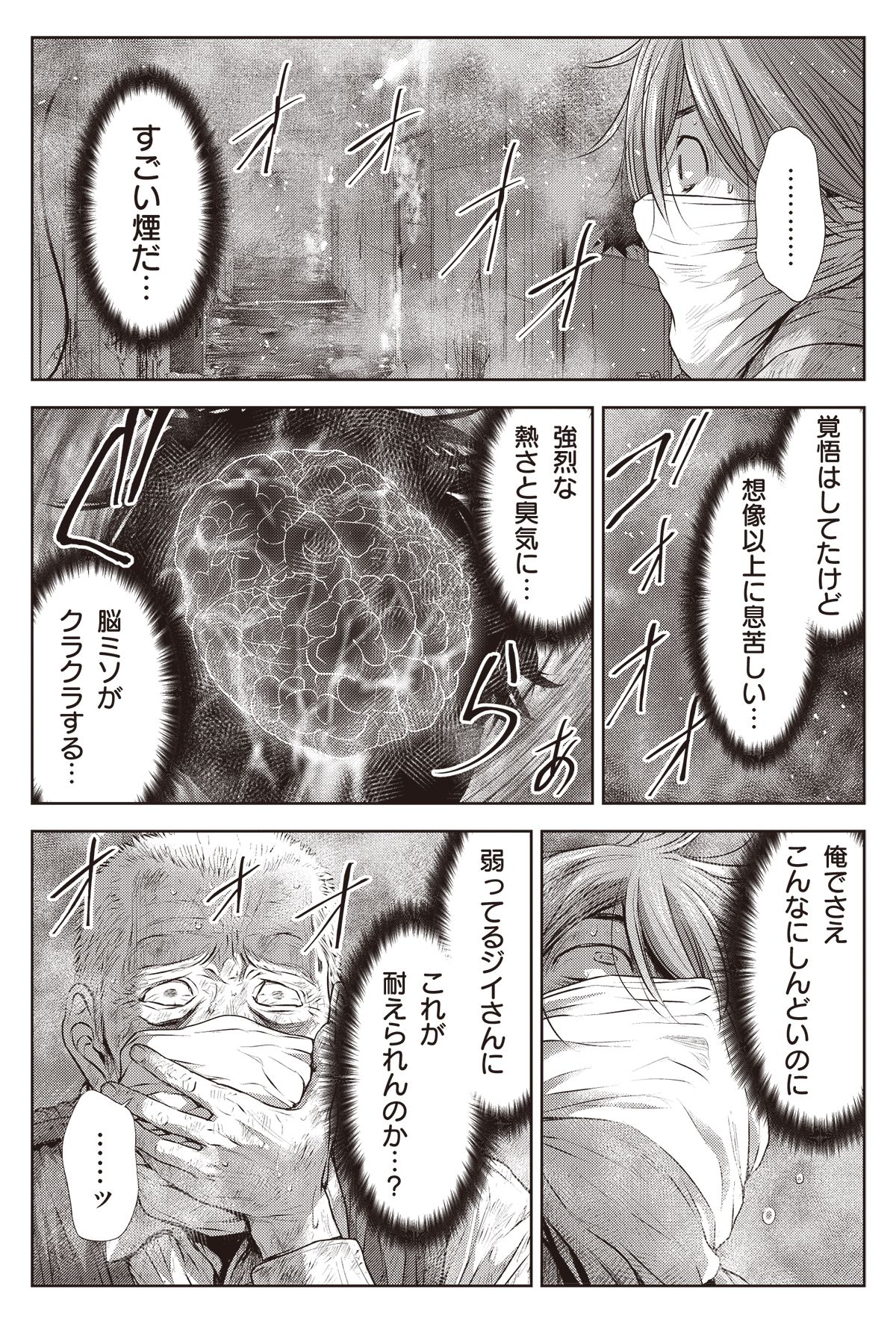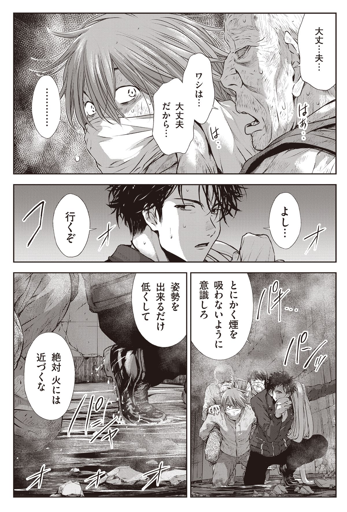 覚悟はしてきたけれども 【5】 【6】 想像を上回る強烈な熱さと臭気! 思考能力が著しく低下し、正常な判断をするのが難しくなっていく西藤たち。 「大丈夫」と語るジイさんだが、かなり衰弱した彼を背負ったまま、本当にビルから脱出できるのか…。