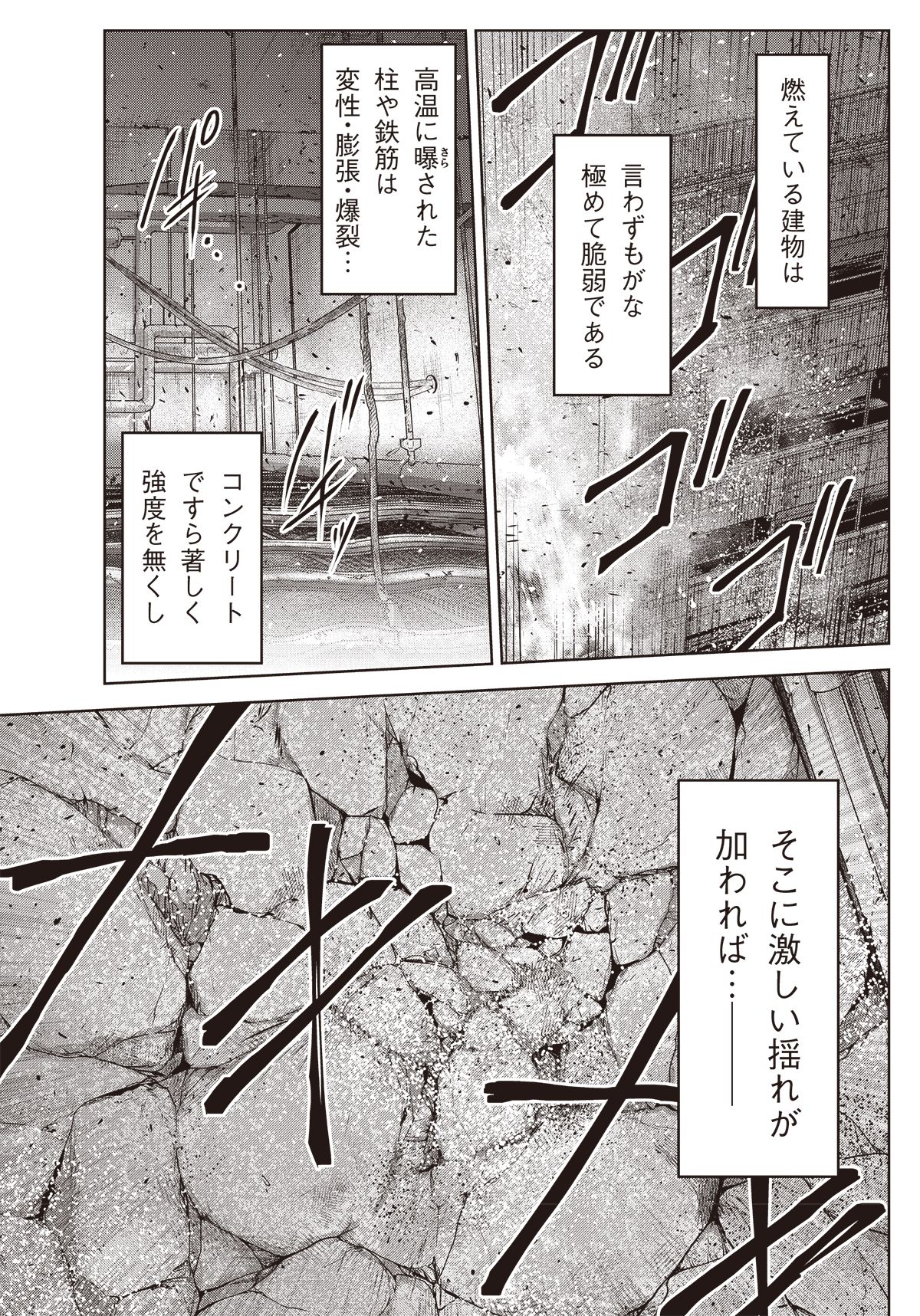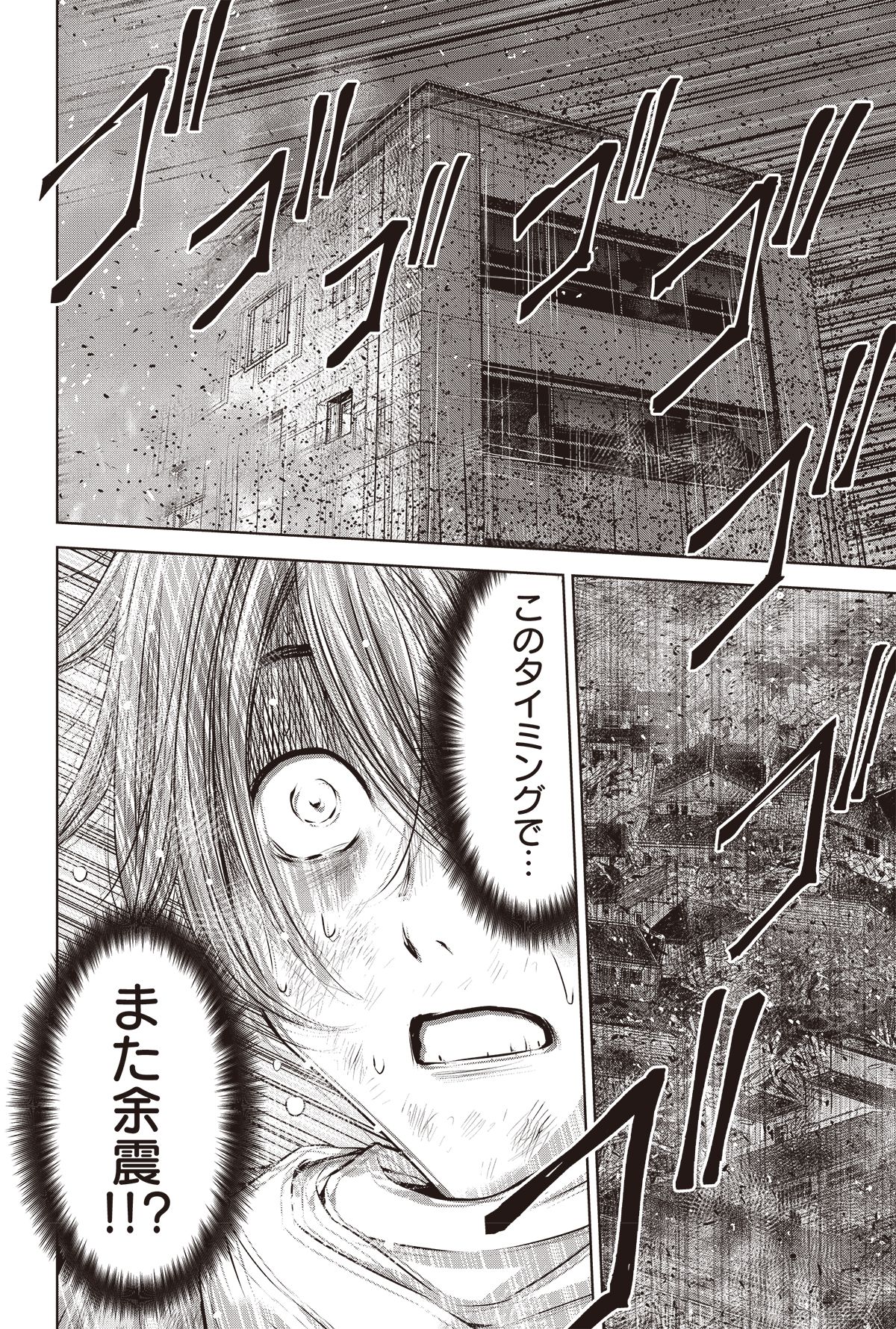 【津波火災】で炎上したビルからの脱出を試みる主人公・西藤たち。体が悲鳴を上げる中、ようやく窓の近くまでたどり着くもそこに再びの余震が!
