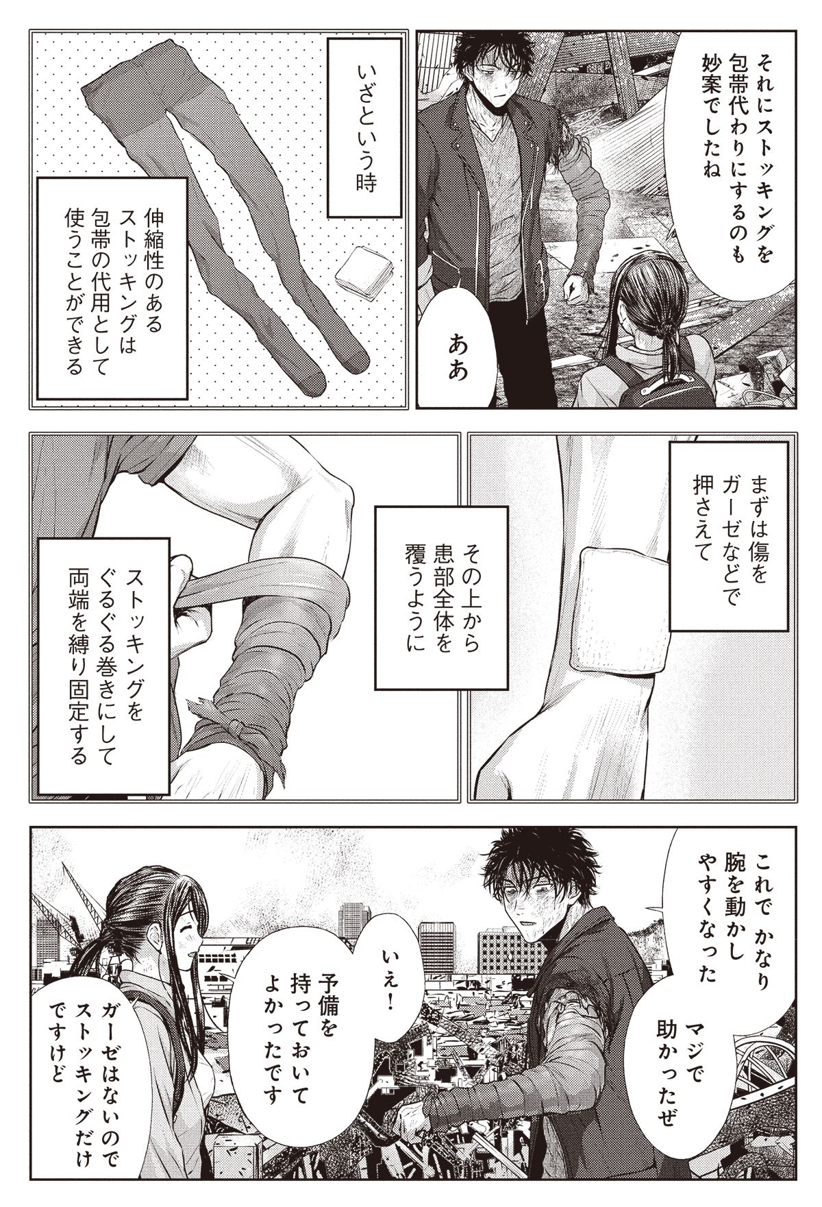 さらにストッキングを包帯代わりにして一行は進む。