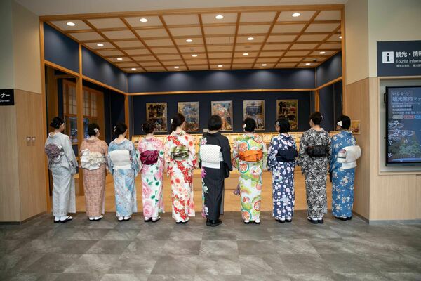 兼六園のすぐ下にあるそのお店は、まるでミュージアムのように壁一面に1300枚の着物が並んでいました。