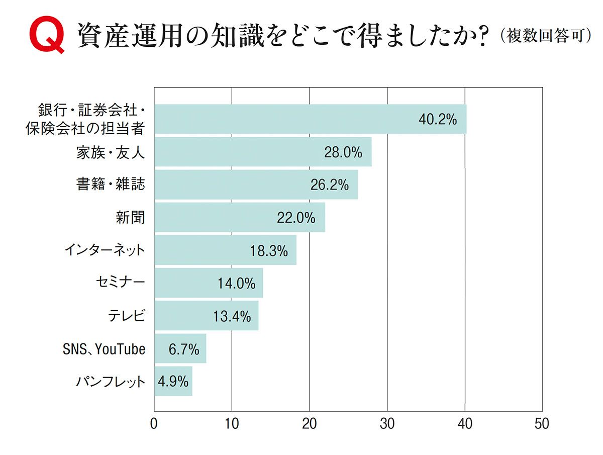 Q.資産運用の知識をどこで得ましたか?(複数回答可)(図を拡大)