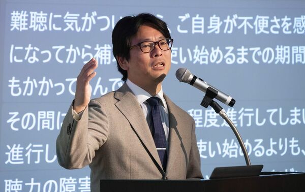 専門家によるセミナーでは、東京女子医科大学耳鼻咽喉科・頭頸部外科学分野教授の水足邦雄さんが「聞こえづらくて微笑んでいませんか?補聴器で『微笑みの障害』を改善」という題で講演。
