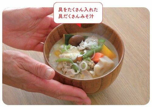 ここでもポイントは、朝たんです。具だくさんみそ汁には、たまごや豆腐・油揚げなど、必ずたんぱく質を入れるようにします。