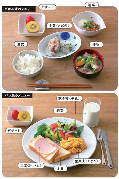 ごはん派、パン派のモデルメニュー