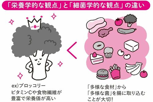 にもかかわらず、「**は体に良いから」と同じものを繰り返し食べていると、その食材ならではの菌は増えるかもしれないけれど、ほかのものからの菌が入ってこなくなるため、結果的に腸内細菌のバランスがひどく崩れてしまうのです。