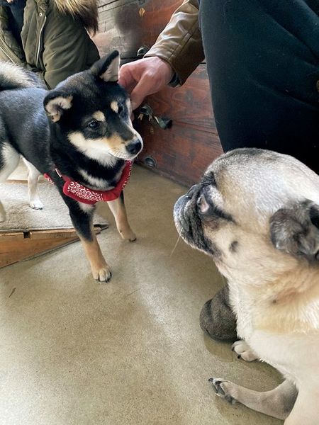 でもお茶目は、自分よりテンション高いワンコが苦手みたい。絡まれれば絡まれるほど、表情はどんどんションボリに。たまに先輩っぽく先頭切って歩いているなと思ったら、単にななつから逃げているだけでした。