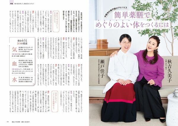 女性の体は、年を重ねるとさまざまな不調をためこみやすくなるもの。女優の秋吉久美子さんも、そんな悩みを抱えているそうで… …。国際中医薬膳師の瀬戸佳子さんが、体のめぐりをよくして、すこやかに暮らす秘訣を教えます