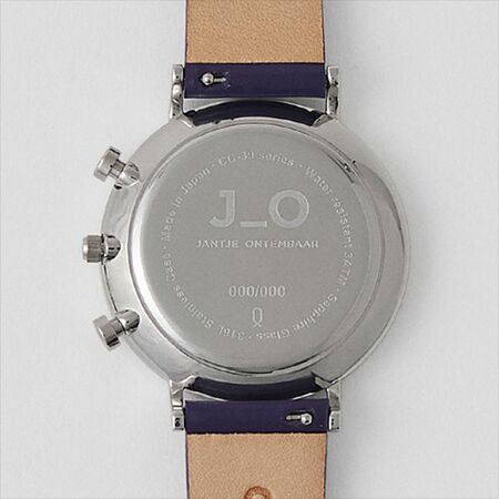 時計の裏蓋にはシリアルナンバーが刻印。電池式クオーツで、商品価格は49,000円(税込)。J_OらしいデザインとKnotの精密な技術が融合した、特別な腕時計に仕上がっている。
