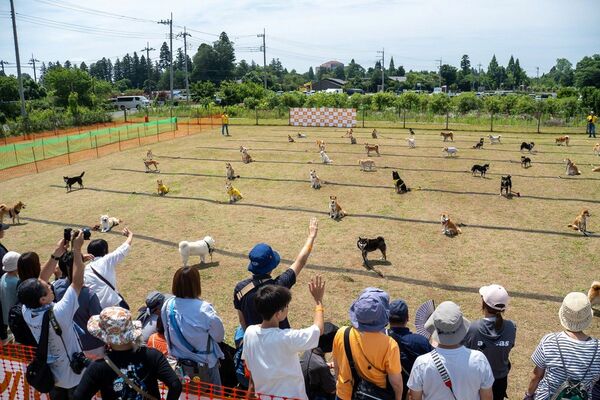 6月下旬に行われた千葉での撮影に参加したのは一般募集した柴犬60頭あまりとその家族。「本当に柴犬が好きな人たちが来てくれました。みんな家族のよう。柴犬がたくさん集まったらけんかになりそうですが、うまく撮影できました」と内藤さんは振り返る。参加したエキストラの柴犬とその家族はキャンピングカーで訪れる人もおり、犬と一緒の旅に慣れている様子だったという。