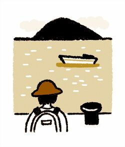 島のほとんどが山で、なだらかな山の車道を歩いていくと、神社や小中学校があり、山中には、なぎなたのような形をした不思議な岩「長刀石(なぎなたいし)」が。