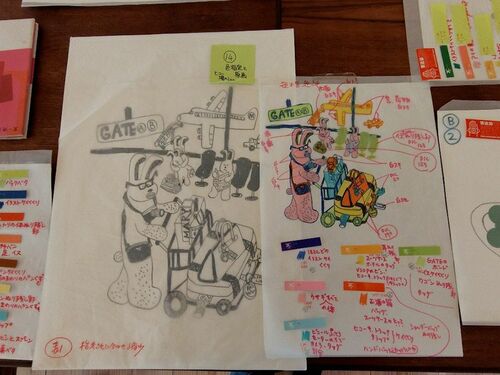 「FUN」には、文字通り「楽しむ」のほかにも重要なキーワードが。なんとこの建物、外壁は吉田牧場の牛たちの牛糞(FUN)が塗られているのです。建築家の中村好文さんのアイディアと知恵とこだわりのつまった「FUN」で躍動する阿部真理子さんのイラストレーション。吉田牧場のすばらしい環境のなかで稀代のアーティストのパワーを浴びる体験を、ぜひ!
