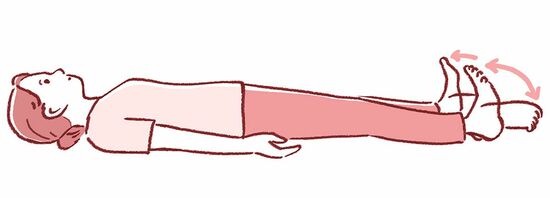 1)仰向けに寝る。足首を意識しながら、つま先を前後にゆっくり10回動かす