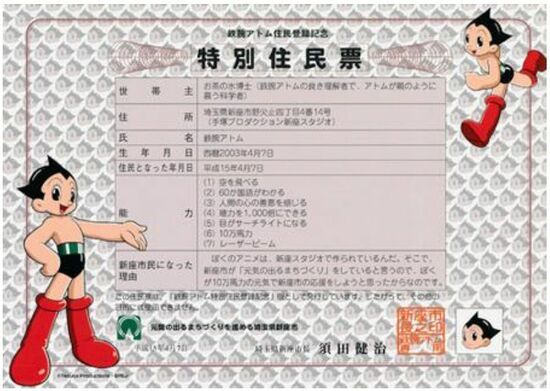 市内にはアニメ制作を担う手塚プロダクション(塚は正しくは旧字のつか)のスタジオがあり、2003年4月7日(作中でのアトムの誕生日)には、アトムを「特別住民」として認定したことでも話題となりました。
