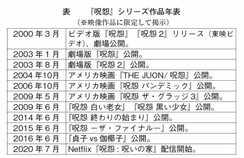 『呪怨』シリーズは、夫によって妻が惨殺された一軒家・佐伯家を舞台に、その家に住んだり、空き家となったその家に肝試し気分で立ち入ったりした者たちが、次々と呪い殺されていく物語を描く。