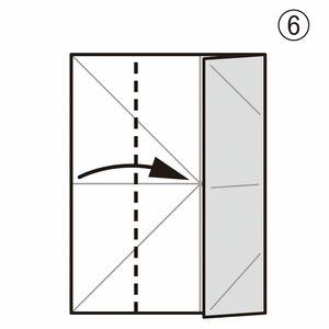 6)(5)と同様に左側も半分に折ってから、左右に開く