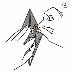 4)折り曲げた部分を指でつまみ、中に指を入れて開く