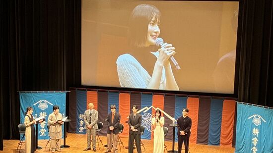 壇上にて蔦重の妻・てい役を演じた橋本さんへ質問をした鶴屋喜右衛門役の風間さん。