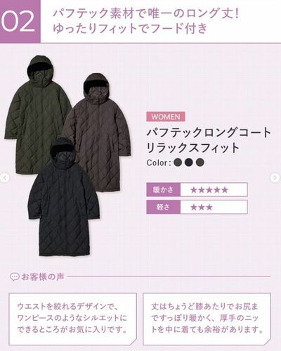 この冬、しっかり活躍してくれそうなユニクロのパフテックロングコートリラックスフィット。ぜひワードローブに取り入れてみてくださいね。