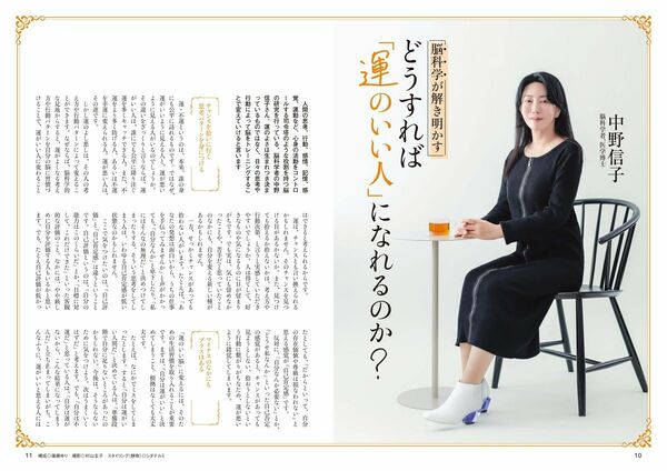 人間の思考、行動、感情、記憶、感覚、運動など、心身の活動をコントロールする司令塔のような役割を持つ脳の研究を行っている、脳科学者の中野信子さん。運のよさは生まれつき決まっているものではなく、日々の思考や行動によって脳をトレーニングすることで変えていけると言います