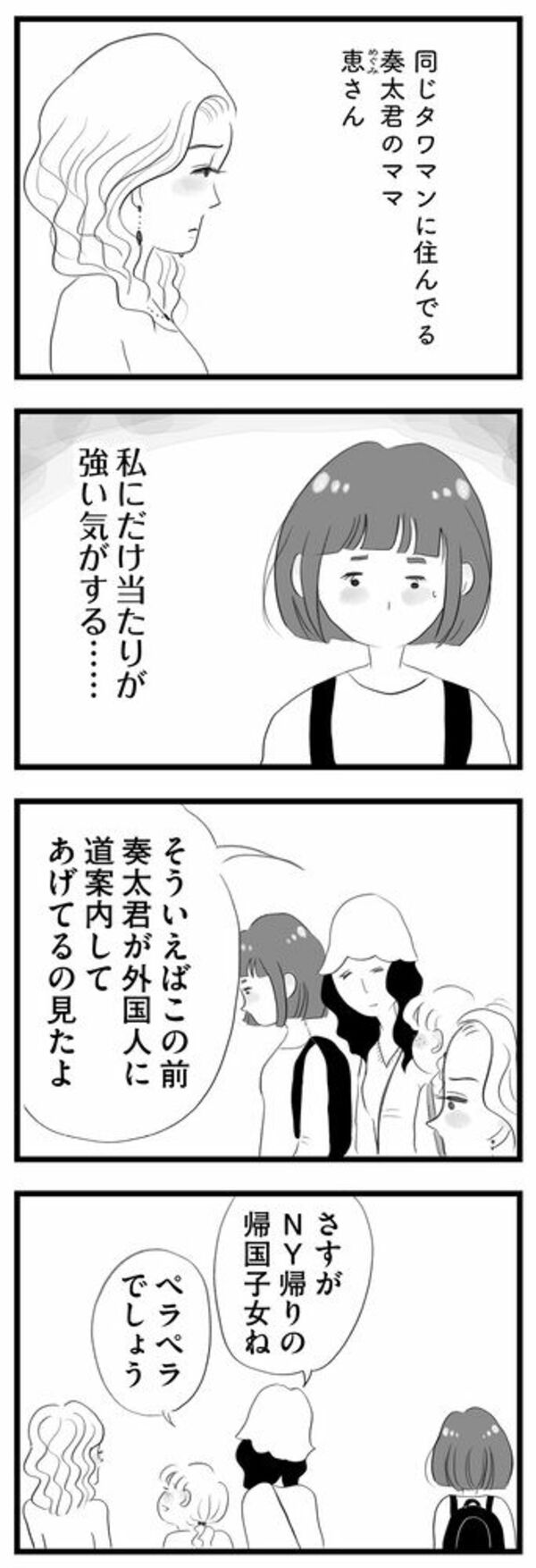 【タワマンに住んで後悔してる】同じタワマンに住むママ友ができた。しかし42階在住ママの当たりが強く…会話に入れないなか、26階在住バリキャリママに声をかけられて(2)