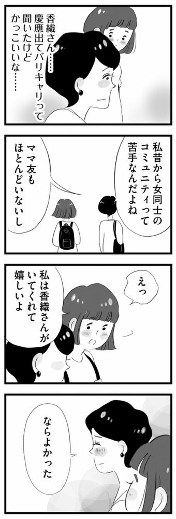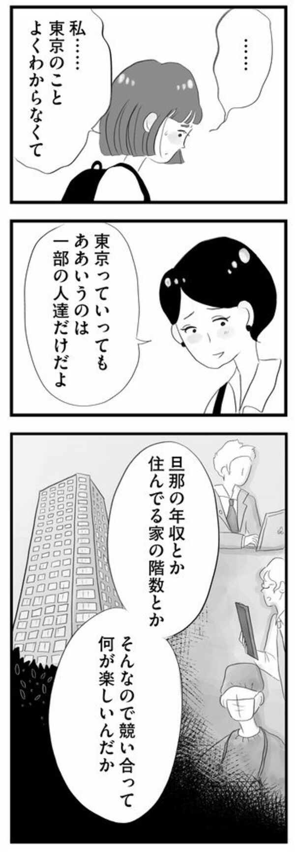 【タワマンに住んで後悔してる】同じタワマンに住むママ友ができた。しかし42階在住ママの当たりが強く…会話に入れないなか、26階在住バリキャリママに声をかけられて(2)
