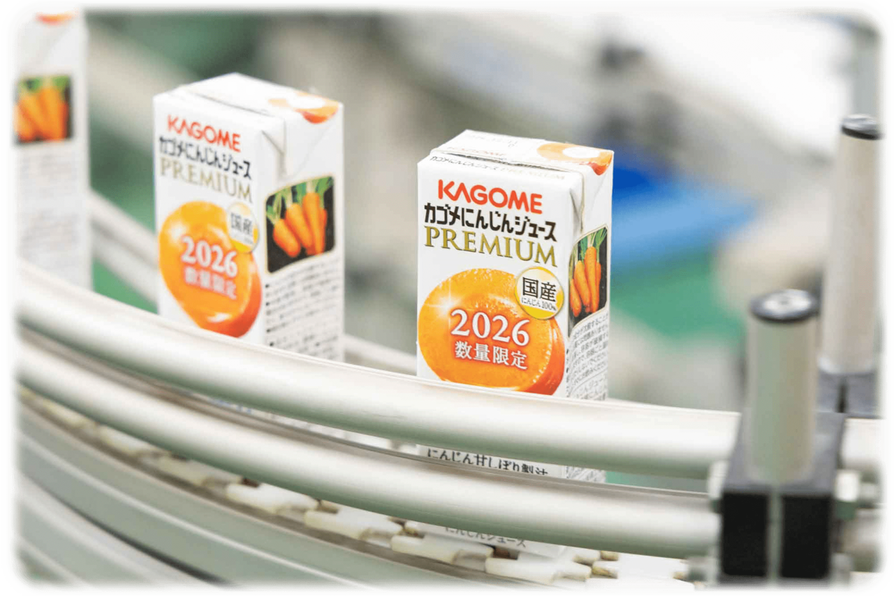 わが社のにんじんジュースの歴史は、1980年代の缶ジュースから始まっています。「カゴメ にんじんジュースプレミアム」は2016年に冬季限定として発売、当初はストレート製法でしたが、2024年から濃縮還元製法に変更し、旬のにんじんのおいしさを活かしながら安定した品質を実現しています。さらに、2026年からは、にんじんを切らずに茹でてしぼるという「にんじん甘しぼり製法」を新しく採用しています。にんじんは本来、傷つけられると防御反応を起こして、青臭さやえぐみが発生しますので、にんじんをできるだけ傷つけないようにするのが、この製法の最大のポイントであり、製造現場としては苦労するところでしょうか。自然の素材のみで味を一定に保つことも繊細で難しい技術です。おいしさの判断は、機械での数値計測と、人の舌。社内で試験をパスした専属のパネラーが何度も試飲を繰り返し判断しています。実は「世界一のにんじんジュースを作ろう」と5年前からカゴメのメンバー一丸となって試行錯誤を繰り返して今に至っています。今年も自信あるジュースが完成しましたので、2026年版の「カゴメにんじんジュースプレミアム」をどうぞお楽しみください。