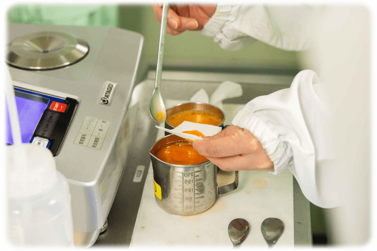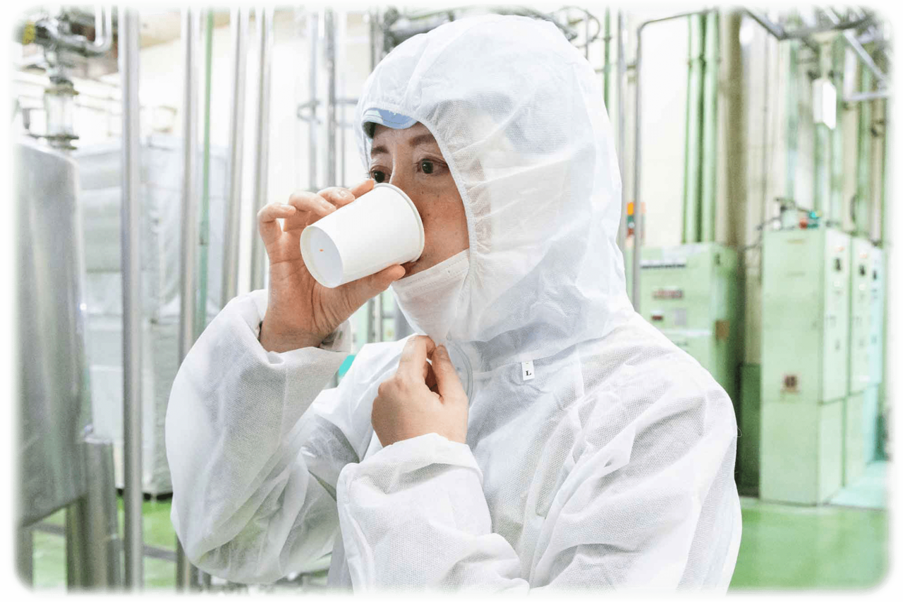 出荷するジュースの味にばらつきがないよう、定期的に成分チェックを行う