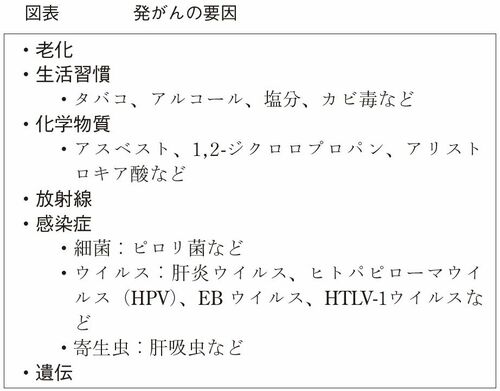感染症に関しては、下図表に示したとおり、肝炎ウイルスによる慢性肝障害由来の肝臓がん、ヒトパピローマウイルス(HPV)持続感染からの子宮頸がん、ピロリ菌感染由来の胃がんなどが発生していないか確認するため、定期的な受診が必要である。