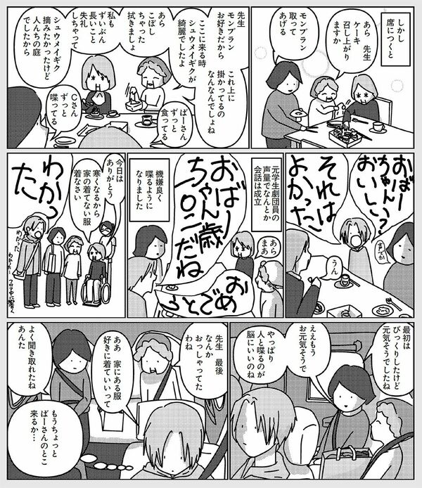 スタッフさんに甘え、ケーキを2つも平らげ、プレゼントに素直に喜ぶ祖母は、まさしく魔法が解け毒気が抜けた荒地の魔女のようだった。