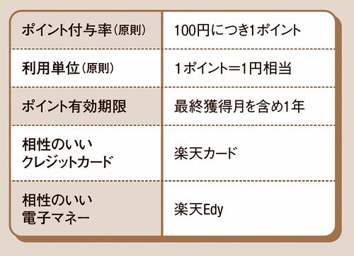 加盟店や提携サービスが多く、日本最大級の通販サイト「楽天市場」で活用できることも魅力です。