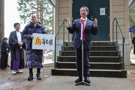 続けて、伊木米子市長は、「この度の石馬公開をきっかけとし、米子市淀江の深い歴史にスポットライトが当たればと思う。また午年の今年、県内各地の馬にまつわる様々な物事に関心を持ち、鳥取県が一層光り輝く年になることを祈る。」と挨拶。