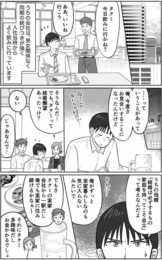 結婚せず実家で暮らし続ける子どものことが気がかり。そんな人も多いのではないでしょうか。専業主婦の安藤アイコさん(60代)もその一人。29歳になった息子は結婚する気配もありません。アイコさんは社宅仲間だった村田さんにお願いし、息子のお見合いにこぎつけますが、当の本人は乗り気でなくて……