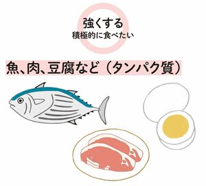 よい細胞をつくるために不可欠。動物性タンパク、植物性タンパクなど多様な種類を