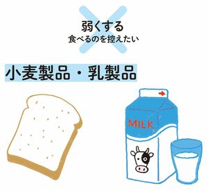 「最も注意したい食材は小麦製品と乳製品です。小麦のグルテンは腸壁の細胞間を広げ、乳製品のカゼインは腸に炎症を起こしやすいことがわかっています。アレルギー症状がある人は、まず2週間摂取をやめてみましょう。乳酸菌は、ヨーグルトより漬物や納豆で摂るのがおすすめです。また、甘いものは抗菌タンパクの産生を阻害するので控えめに。粘膜細胞は3日程度で入れ替わるため、食事を変えれば改善も早いはずです」
