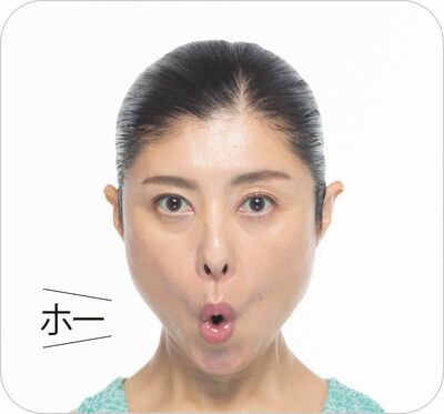 鼻の下を伸ばしながら「ホー」と息を吐く。顔を縦に伸ばすイメージで