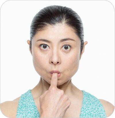 〈口角が上がった美しい笑顔に〉フィンガーinスマイル 頬と口角を連動させて持ち上げるトレーニング。 指を使って口元の力を抜くと、頬の筋肉が使いやすくなる (1)人差し指を軽くくわえる 口まわりの緊張をゆるめ、人差し指を軽くくわえる すべての写真を見る (2)頬と口角を持ち上げる 上の歯が8本見えるように頬と口角を持ち上げ、5秒キープ。3セット行う