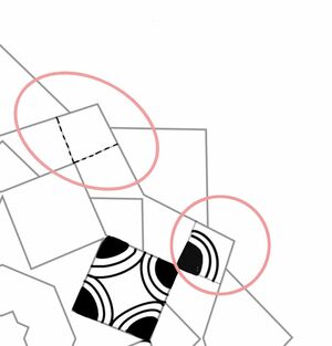 外側にミツバ(B)と扇(C)を。(B)は中心の隙間を塗りつぶします。四角い枠には(A)を。このパターンを繰り返します。